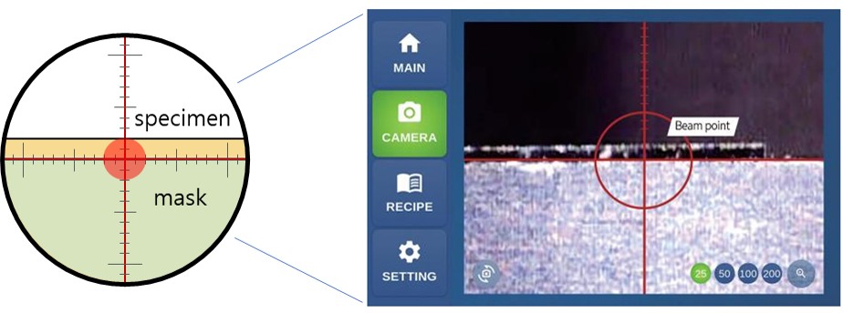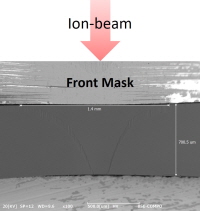 Cross-section Milling은 시료 표면의 일부를 마스크로 보호한 상태에서 노출된 영역에 이온빔을 조사하여 정밀한 단면을 형성하는 가공 방식입니다.