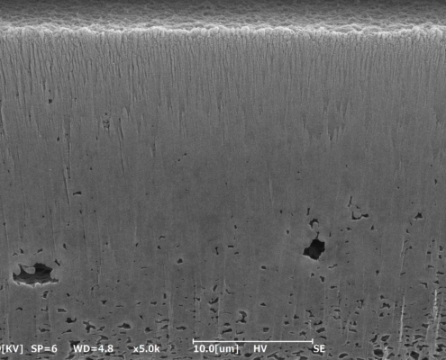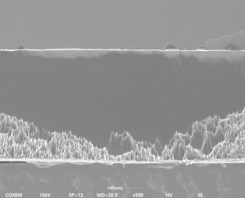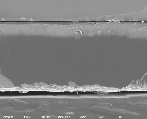 아르곤 이온빔 기반 단면 가공을 통해 기계적 연마에서 발생하는 변형층, 크랙, 오염을 최소화하며, 결함 없이 깨끗한 단면을 형성하여 SEM, EDS 분석의 신뢰도를 높입니다.